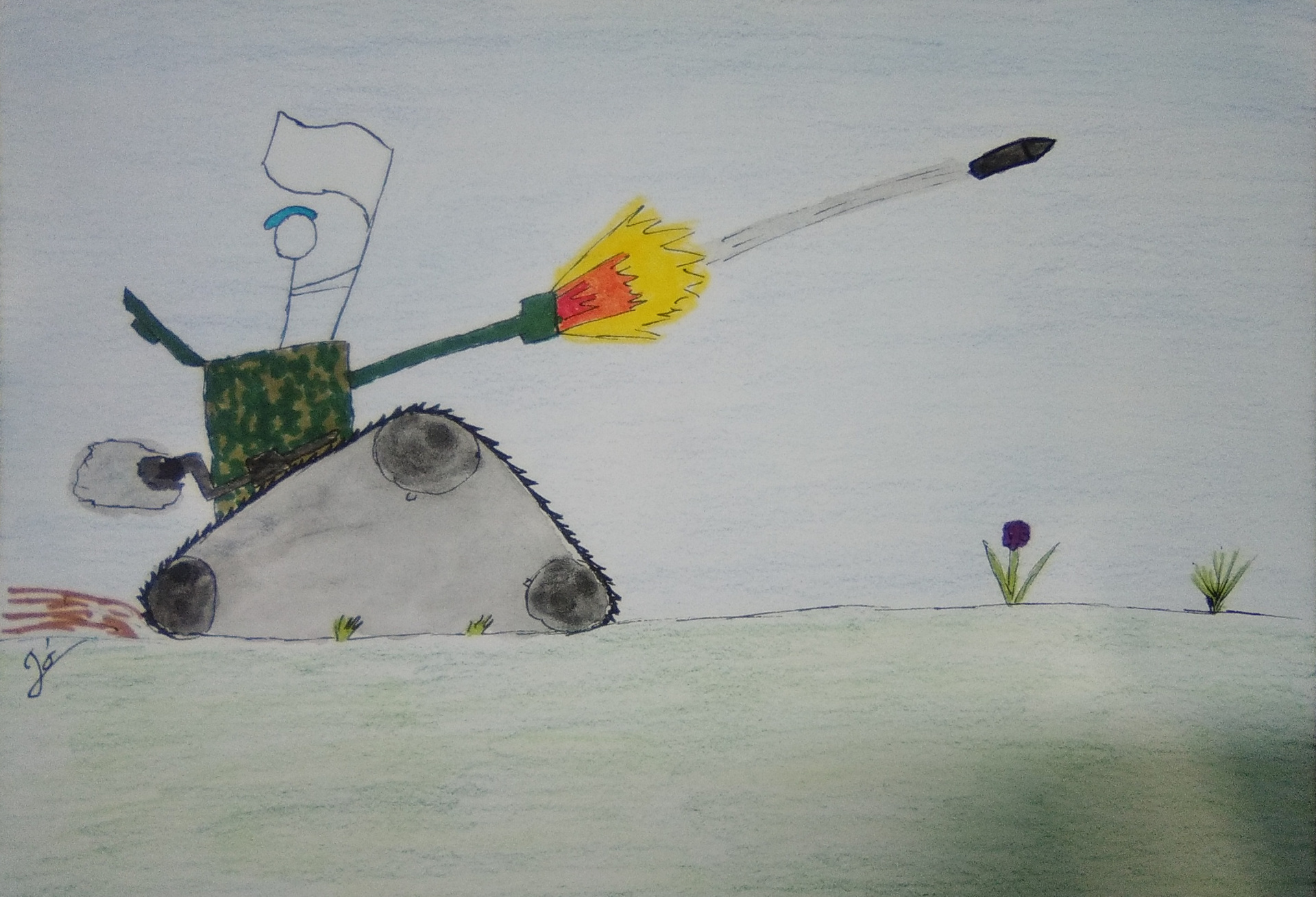 J'ai tenté un dessin coloré avec feutres à alcool, aquarelle et crayons de couleurs.